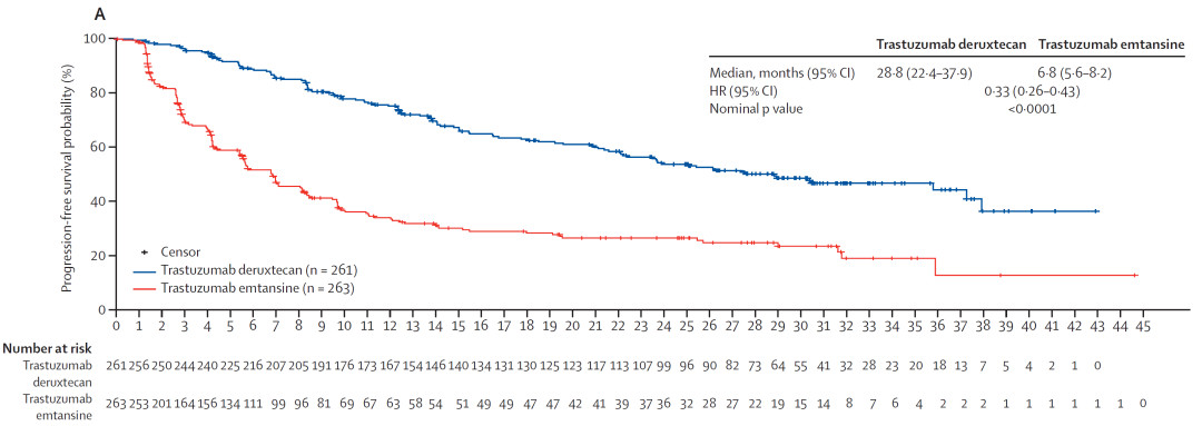 [5]Supplement to:Hurvitz SA,Hegg R,Wei-Pang Chung W-P,et al.Trastuzumabderuxtecan versus trastuzumab emtansine in patients with HER2-positive metastatic breast cancer:updated results from DESTINY-Breast03,a randomised,open-label,phase 3 trial.Lancet 2022;published online Dec 7.https://doi.org/10.1016/S0140-6736(22)02420-5.