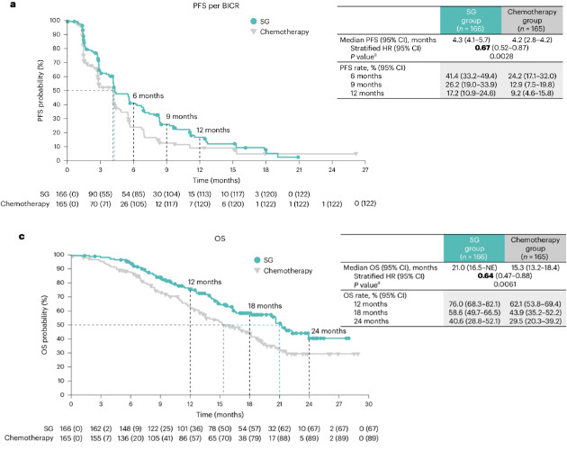 众所周知,SG已在超过40个国家获批用于治疗HR+/HER2-晚期乳腺癌,且在2025年3月获得NMPA批准用于治疗既往接受过内分泌治疗且在转移性疾病阶段接受过至少2种其他系统性治疗的不可切除局部晚期或转移性的激素受体(HR)阳性、人表皮生长因子受体2(HER2)阴性(IHC 0、IHC 1+或IHC 2+/ISH-)乳腺癌成人患者。该适应症批准主要基于TROPiCS-02研究及EVER-132-002研究。