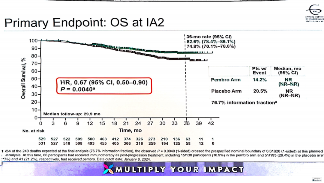 在第56届美国妇科肿瘤学年会(SGO 2025)上,来自美国弗吉尼亚大学医学院Linda R.Duska教授分享了ENGOT-Cx11/GOG-3047/KEYNOTE-A18研究第二次中期分析的总生存期(OS)和无进展生存期2(PFS2)结果,为同步放化疗联合免疫治疗成为高危局部晚期宫颈癌新标准治疗方案再添新证。《肿瘤瞭望》就该研究成果进行整理,以飨读者。