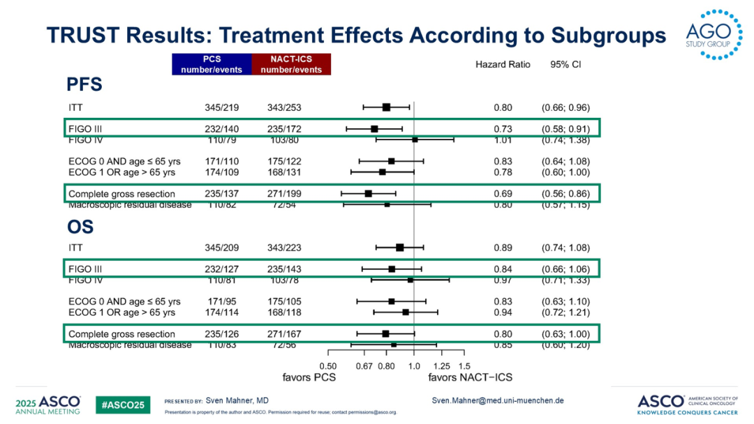 TRUST研究验证了“高质量PCS”才可能给晚期卵巢癌患者带来生存获益,R0切除是关键因素。应鼓励将手术集中到具备高质量外科能力的医疗中心进行治疗。