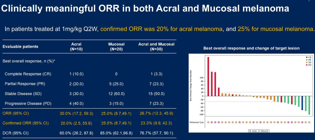 首创新药PD-1/IL-2α-bias双特异性抗体融合蛋白IBI363用于接受过免疫治疗的晚期肢端和黏膜型黑色素瘤患者的疗效及安全性结果