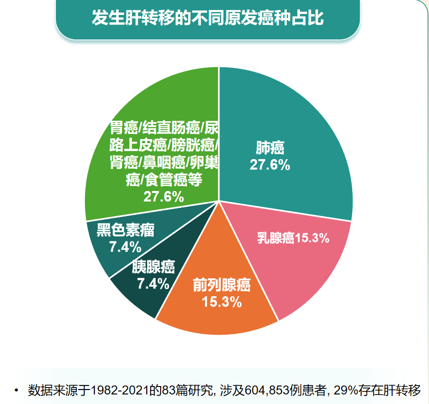 王佳玉教授:肝脏是许多原发性恶性肿瘤的常见转移部位,肝转移最常见的原发性恶性肿瘤包括肺癌(27.6%)、乳腺癌(15.3%)、前列腺癌(15.3%)、胰腺癌(7.4%)和黑色素瘤(7.4%)[1]。乳腺癌是恶性肿瘤肝转移的第二大高发癌种,约25.6%~56%转移性乳腺癌患者会发生肝转移[2]。目前,国内外指南尚未明确乳腺癌肝转移的药物治疗方案,也尚无数据支持伴肝转移晚期乳腺癌(mBC)患者局部治疗的最佳方案。因此,对于乳腺癌肝转移患者而言,找到最佳治疗方案,并使其愈后改善是非常重要的,这对原发肿瘤治疗的影响也是非常大的。