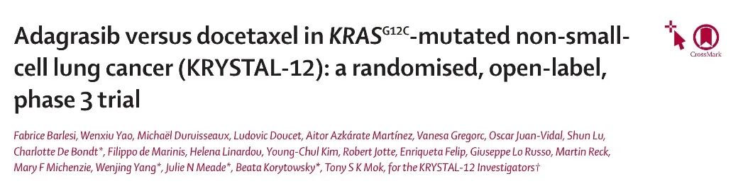 adagrasib或多西他赛治疗KRAS G12C突变非小细胞肺癌患者:一项随机、开放标签、III期临床研究(KRYSTAL-12研究)