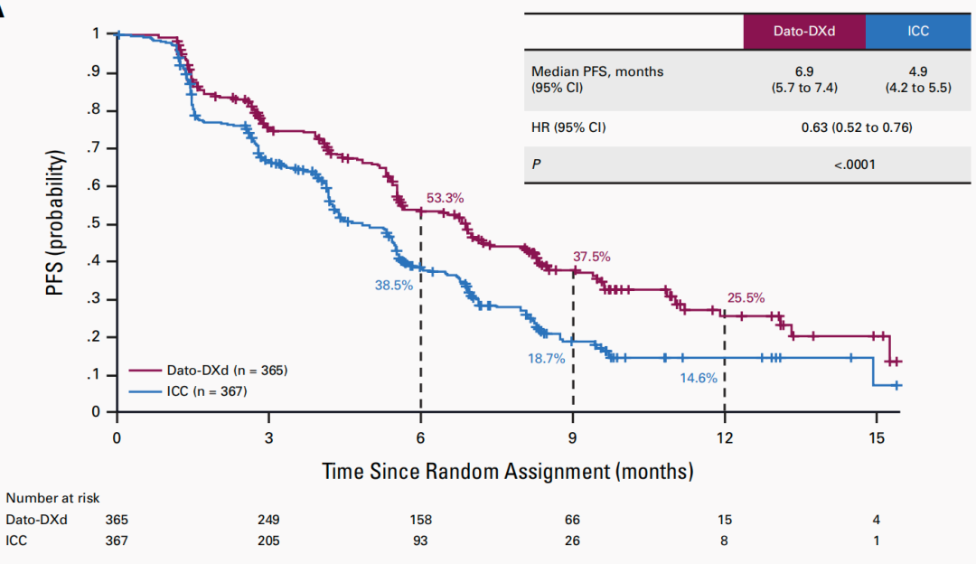 [1]Bardia A,Jhaveri K,Im SA,et al.Datopotamab Deruxtecan Versus Chemotherapy in Previously Treated Inoperable/Metastatic Hormone Receptor-Positive Human Epidermal Growth Factor Receptor 2-Negative Breast Cancer:Primary Results From TROPION-Breast01.J Clin Oncol.Published online September 12,2024.doi:10.1200/JCO.24.00920