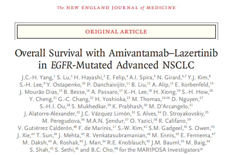 MARIPOSA研究最终OS数据发表于《新英格兰医学》杂志,陆舜教授领衔中国专家共同助力肺癌治疗研究迈向新高度。