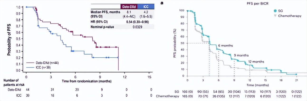 TROPION-Breast01研究(左)与TROPiCS-02研究(右)的PFS