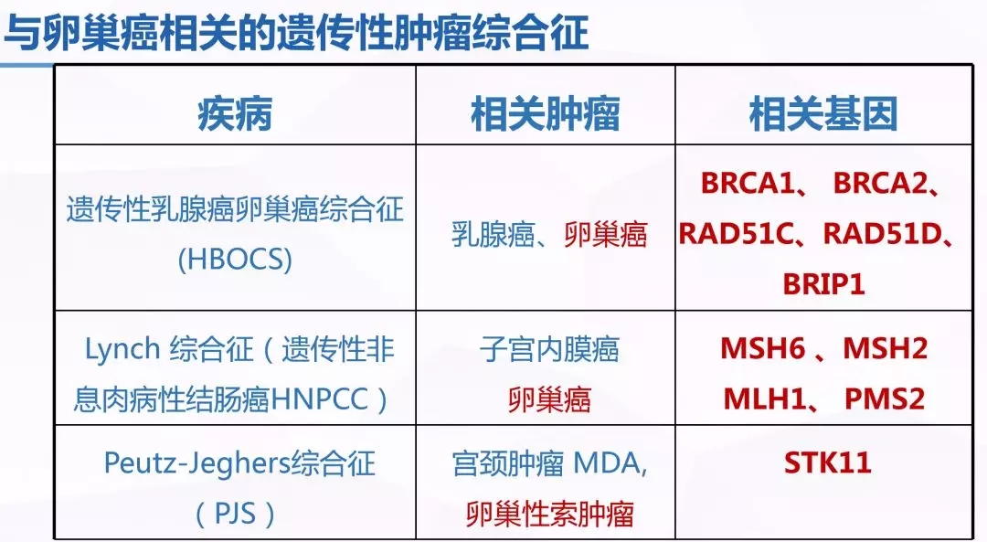 与卵巢癌相关的遗传性肿瘤综合征如下图: