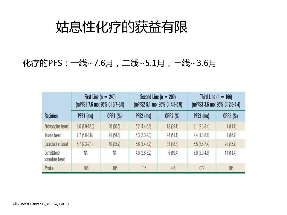 首先,从定义上看,原发性耐药指在辅助内分泌治疗过程中2年内出现复发,在晚期患者一线解救内分泌治疗3-6个月内出现疾病进展。但是在现实中多次内分泌治疗是按照最严重的进展来判断还是最近一次来判断还没有明确的定论。第二,现实中大多数为经过化疗之后再内分泌治疗的患者,那么化疗的延续效应也是无法得知的。所以根据这两点,我们所阐述的观点是,对原发耐药的定义不是十分客观,主要是为了临床研究入组而做的界限设定,甚至只是临床上大家为了方便而较为主观的判断。因此,从一定程度上讲,目前所说的原发性耐药只是对原来或正在使用的药物耐药但并不代表对未来的药物耐药。