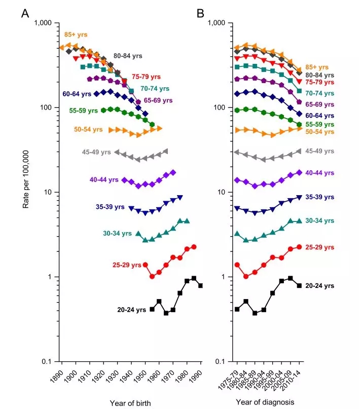 在世界范围内,尽管高龄段结直肠癌患者的发病率已显著降低,但小于55岁的结直肠癌患者的发病率和死亡率却在逐年升高,