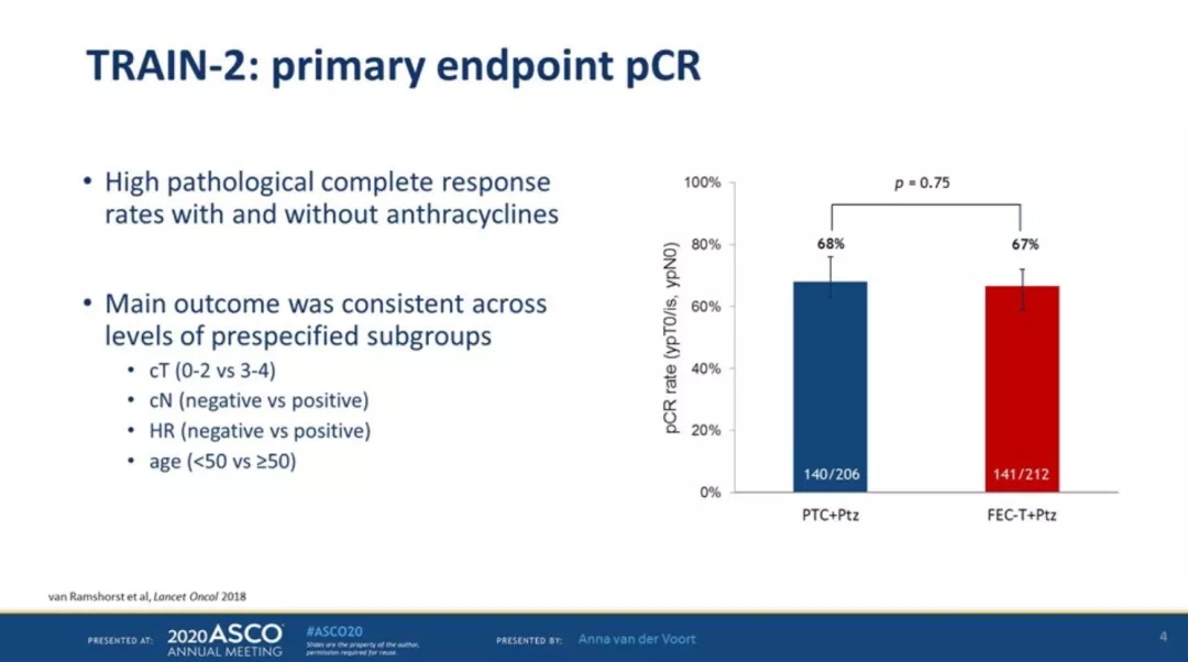 TRAIN-2研究:抗HER2±蒽环新辅助治疗