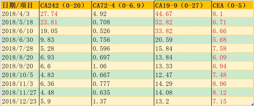 2018-12-22再入院,予卡培他滨 1.0g p.o. B.i.d D1-14,曲妥珠单抗 264mg i.v.D1。