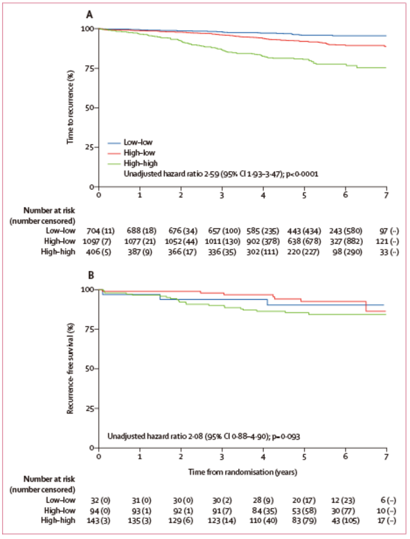 这项多中心、非盲、平行分组、随机对照3期试验,于2008年10月13日~2014年4月16日从英国130家医院入组了4480例患者。纳入患者为年龄≥50岁、WHO体力状态评分0~1分、绝经后女性、HR阳性可手术乳腺癌,按2:1随机分为POAI组(n=2976,术前2周,口服来曲唑2.5mg/天或阿那曲唑1mg/天)和对照组(n=1504)。主要终点为复发时间;次要终点为Ki-67≥10%或<10%与疾病结局的相关性。