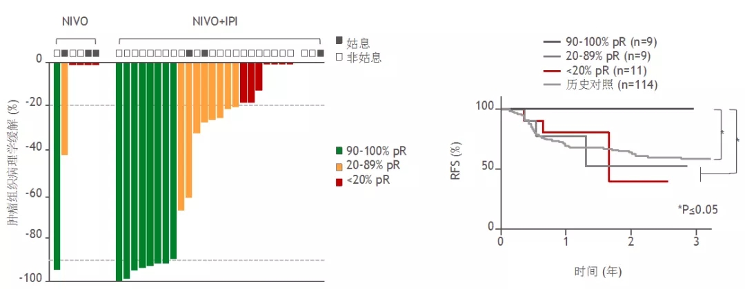 31%(9例)患者达到 (接近)病理完全缓解(pCR),另有31%的达到了病理缓解(pR);