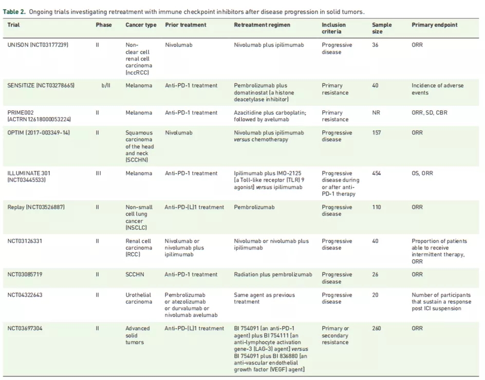 4. Yang KL, Li JR ,Sun Z,et al. Retreatment with immune checkpoint inhibitors in solid tumors: a systematic review.Ther Adv Med Oncol,2020, Vol. 12: 1-18.