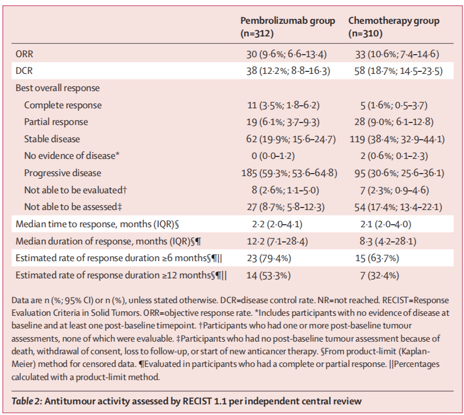 pembrolizumab组vs.化疗组:25(12%)/203 vs. 19(9%)/202。