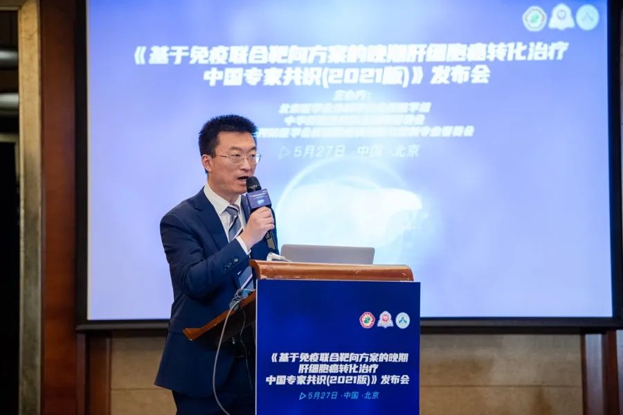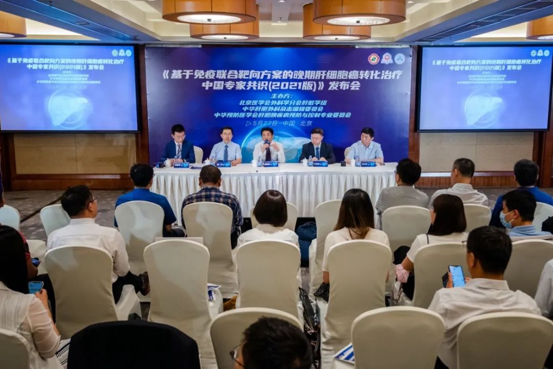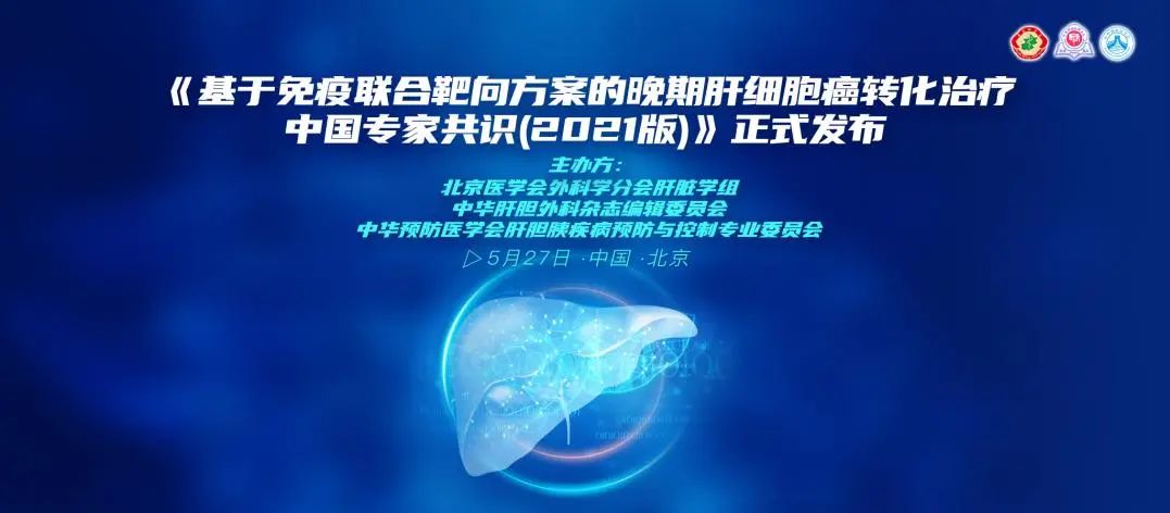 2021年5月27日,《基于免疫联合靶向方案的晚期肝细胞癌转化治疗中国专家共识(2021版)》(以下简称《共识》)发布会在北京举行。本次发布会是由北京医学会外科学分会肝脏学组、中华肝胆外科杂志委员会、中华预防医学会肝胆胰疾病预防与控制专业委员会联合主办,会议就《基于免疫联合靶向方案的晚期肝细胞癌转化治疗中国专家共识(2021版)》相关要点开展了深入的讨论,以指导临床实践,规范医疗行为,推动学科发展。