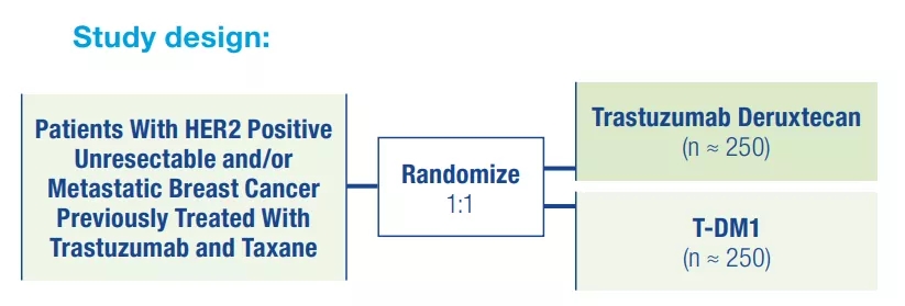 Trastuzumab Deruxtecan(T-DXd)对比Trastuzumab Emtansine(T-DM1)治疗HER2+转移性乳腺癌(mBC):随机3期DESTINY-Breast03研究结果