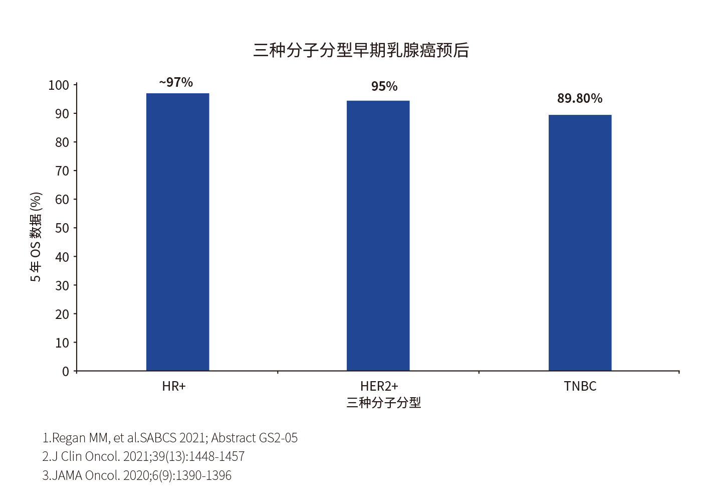 Δ不同分子分型乳腺癌早期和晚期(一线)5年OS率