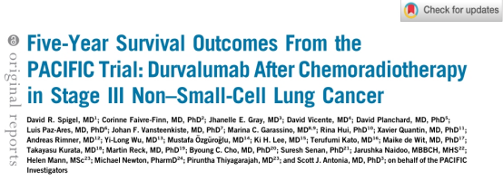 前言:PACIFIC研究结束了局部晚期NSCLC患者接受同步放化疗后无维持治疗的尴尬局面为这部分患者带来新的治疗手段。研究的PFS和OS结果均登顶《新英格兰医学杂志》,也是肺癌领域为数不多的PFS及OS分析均发表于这一顶级期刊的研究。近期,JCO杂志公布了该研究的5年随访数据。