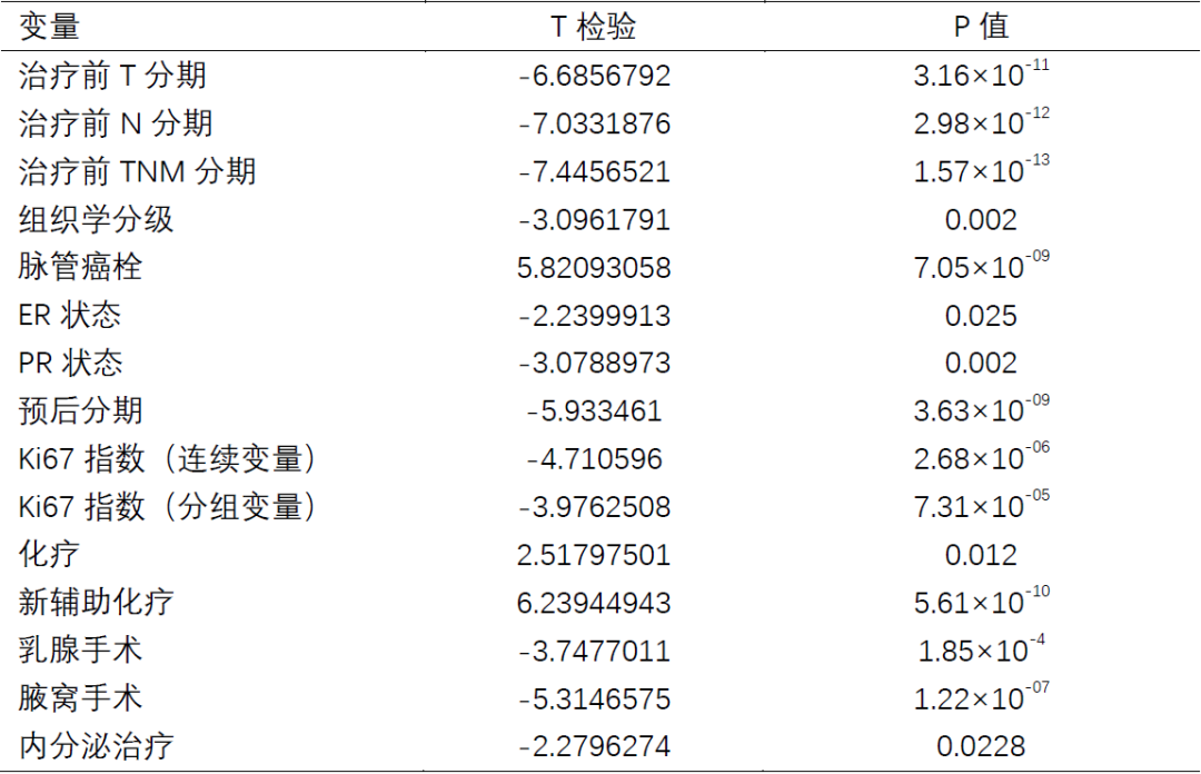 表3.HER2低阳性表达乳腺癌5年复发风险模型的有效特征