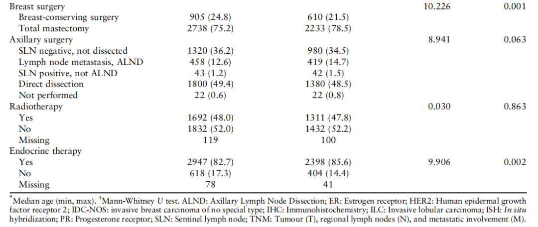 该研究的主要终点是5年无病生存率(DFS)。DFS测量从患者接受手术之日起至复发转移之日或最后一次随访。次要终点为5年总生存率(OS)。OS测量从乳腺癌诊断之日起至因任何原因死亡或最后一次随访。所有患者每6个月随访一次,最后一次随访日期为2021年5月。随访内容包括乳腺及腋窝淋巴结B超、腹部B超/CT、胸部X线/胸部CT等必要检查。