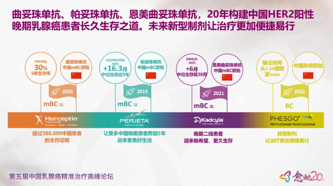 值此赫赛汀?+帕捷特?和赫赛莱?中国晚期适应症获批周年之际,与会专家共同参与庆典仪式,一起在云端回望我国乳腺癌抗HER2精准治疗的发展。PUFFIN研究为中国晚期HER2阳性乳腺癌患者带来赫帕双靶(赫赛汀?+帕捷特?),ELAINA研究则让T-DM1响彻东方。回首来路,那里凝结着我国乳腺领域专家的智慧与汗水,通向的是更多患者的治愈。这不仅是此刻的共庆,也是向那些引领中国乳腺领域发展走向未来光芒的最高致敬。