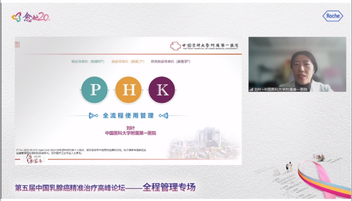 吉林大学第一医院刘叶教授讲解了HPK全流程使用的管理。自曲妥珠单抗(H)登陆中国开启精准的抗HER2治疗时代之后,帕妥珠单抗(P)、T-DM1(K)的陆续上市为HER2阳性乳腺癌患者带来更好的生存。刘叶教授回顾了HPK的重要循证,并对三者的用法、用量、注意事项、不良反应处理和患者宣教经验进行分享,希望为护理人员在为患者使用抗HER2治疗药物提供指导与建议,做到准确用药、规范管理,充分保障药物疗效与安全,使患者从中获益。