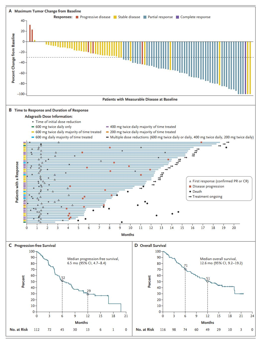 Adagrasib是一款针对KRAS G12C突变的不可逆抑制剂,可将该突变锁定于非激活状态。在一项Ib期临床研究中,该药显示了可接受的安全性及抗肿瘤活性。随后,研究者开展进一步研究,以证实该药的疗效及安全性。