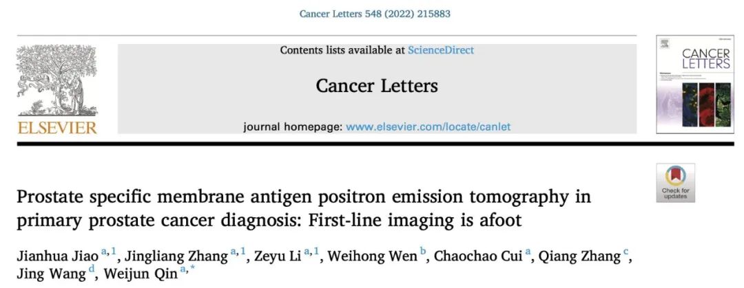 近期,空军军医大学西京医院泌尿外科秦卫军教授团队发表了两篇PSMA PET相关的高分文章,一篇为系统综述,另一篇为真实世界研究。