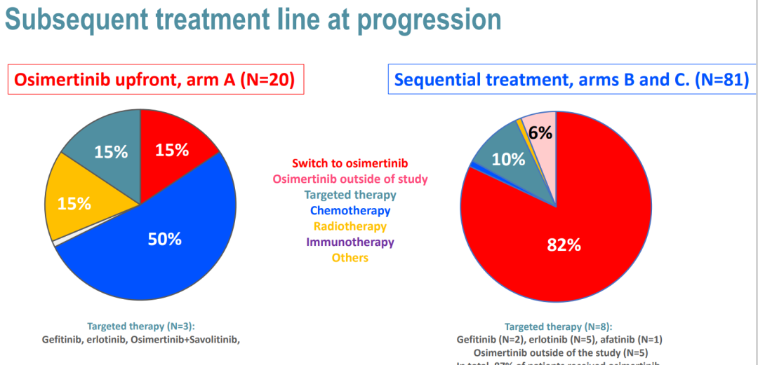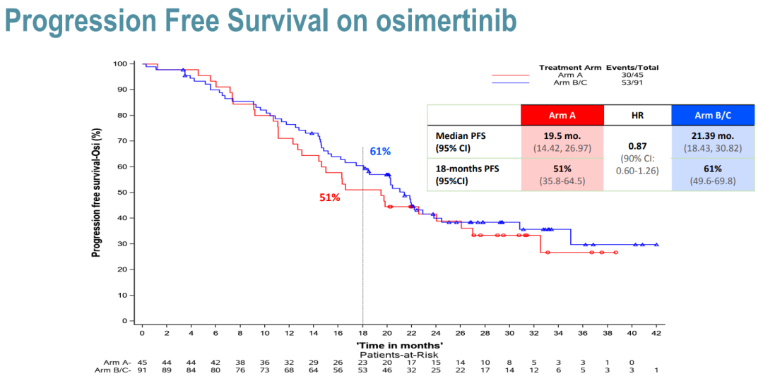 B组和C组患者进展后换用奥希替尼治疗。主要研究终点是使用奥希替尼18个月时研究者评估的无进展生存(PFS)率,次要研究终点为总生存(OS)和颅内病灶PFS(BPFS)