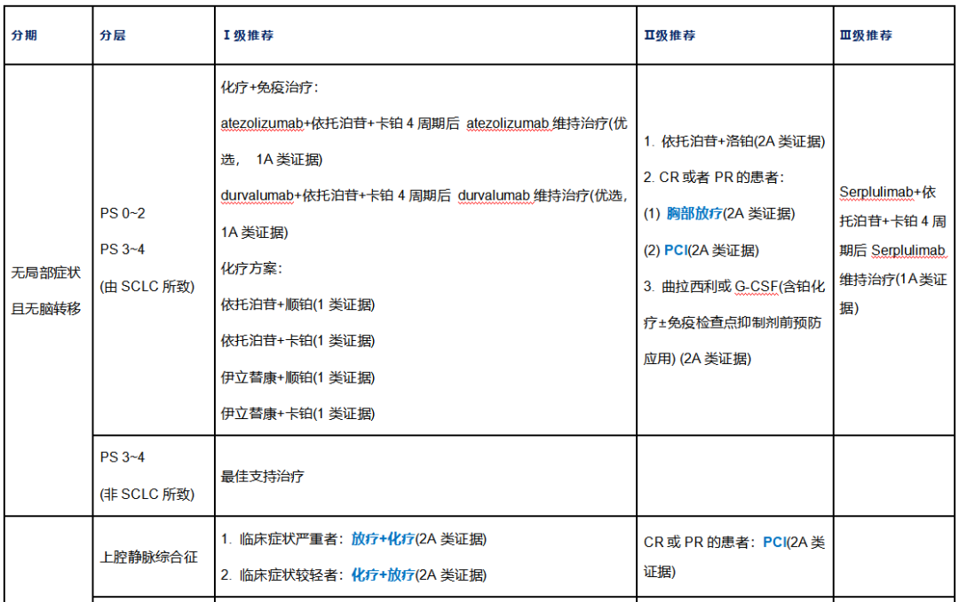 更新:对于T1-2 N0局限期SCLC,预防性脑照射(PCI)由原来的II级推荐(1类)更新为III级推荐(3类)。