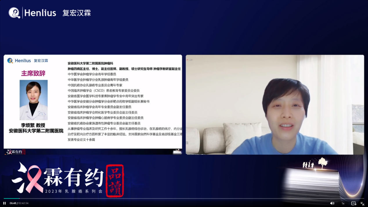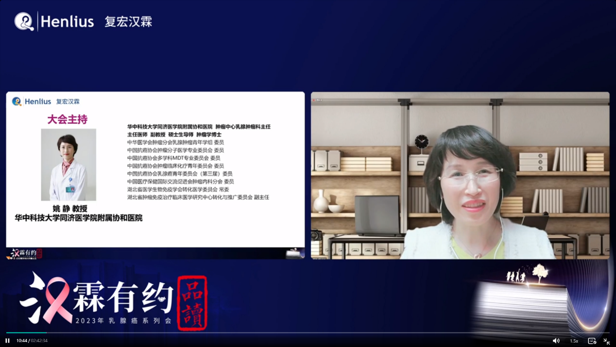 中国科学技术大学附属第一医院马小鹏教授的主持下,江苏省人民医院李薇教授分享了《SGBCC 2023早期激素受体阳性乳腺癌的治疗决策》讲课,从早期激素受体阳性乳腺癌术前内分泌治疗、辅助化疗决策、辅助内分泌治疗持续时间的选择以及阿贝西利辅助治疗的推荐原则等4个方面进行了详细介绍。李薇教授指出,HR+早期乳腺患者在5年后仍有复发风险,在选择患者进行超过5年的内分泌治疗时,应估计复发风险并预测治疗效果。同时,需要考虑年龄和合并症等竞争性风险,但也需要考虑内分泌治疗的耐受性。此外,阿贝西利对激素受体阳性HER2阴性高风险早期乳腺癌领域无浸润病变生存和无远处复发生存均有获益,且获益幅度不断提高。