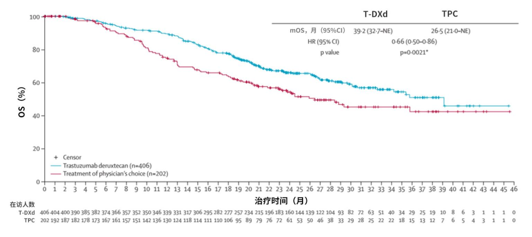 图3 DESTINY-Breast01研究T-DXd在HER2阳性乳腺癌队列的OS