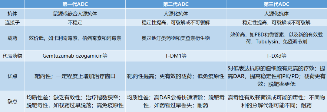 表1.三代ADC的药物特征(来源:参考文献[2]