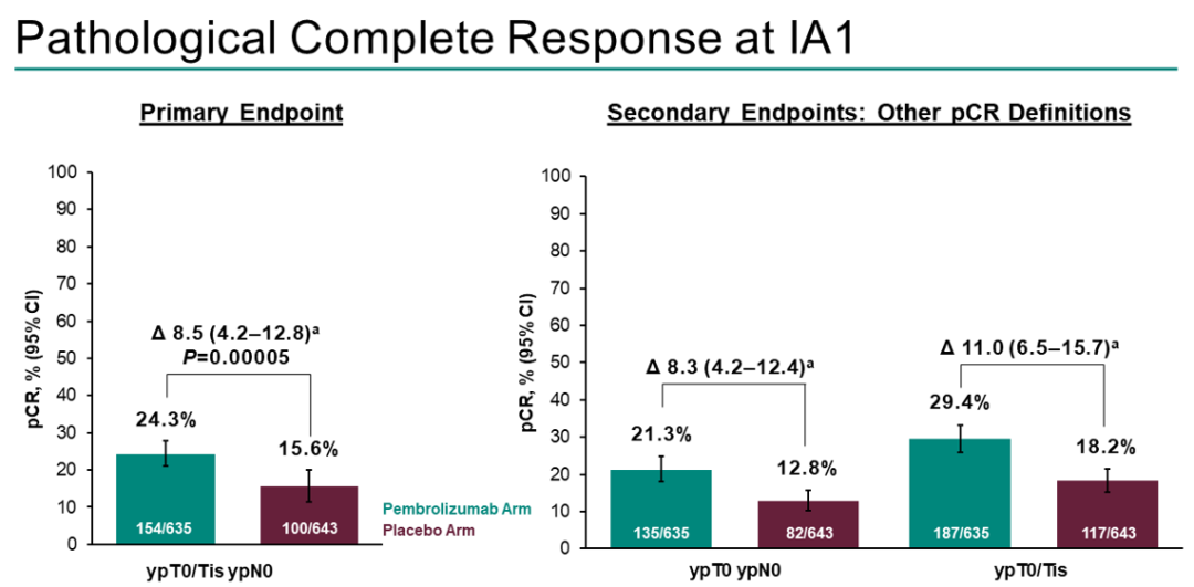 △KEYNOTE-756研究(ESMO Congress 2023,LBA21)显示,在化疗中加入帕博利珠单抗与安慰剂相比,pCR有所改善。