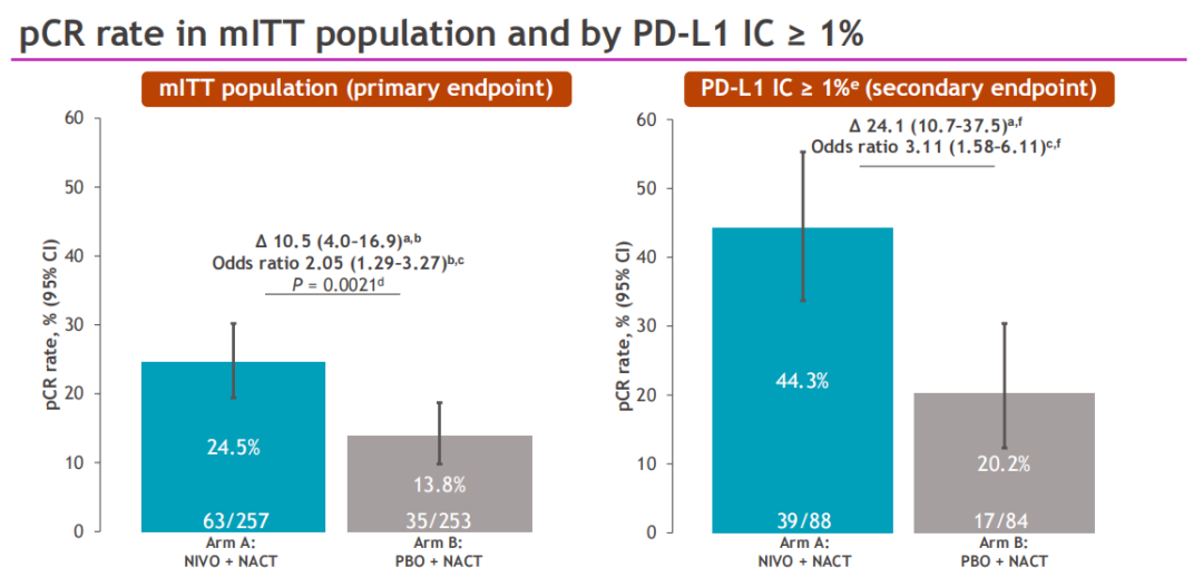 △CheckMate 7FL研究中ITT人群和PD-L1 IC≥1%的pCR率
