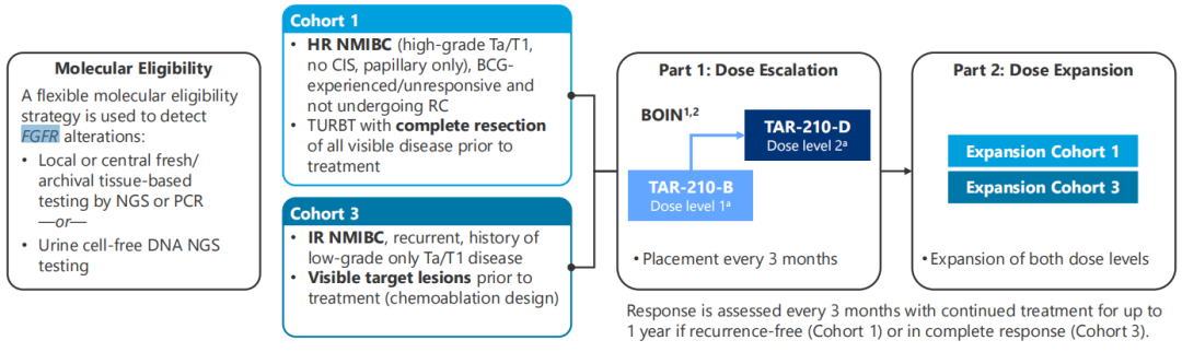 Dr.Andrea Nccchi:Well,the SunRISe-1 is a part of a platform study testing TAR-200 as monotherapy or in combination with the immune checkpoint inhibitors or Cetrelimab(anti PD-1 agent)in various disease stages.The SunRISe-1 in particular is a randomized phase 2b open-label study in which patients are randomized to receive a TAR-200 in combination with the Cetrelimab in cohort-1,TAR-200 in monotherapy in cohort-2,or Cetrelimab in monotherapy in cohort-3.There is an additional cohort of patients that is included in this currently enrolling patients that is cohort-4.It is included in patients with the papillary,high-risk,non-muscle invasive disease.Importantly,cohort-1,2,and 3 are included in patients with the crinoma in situ disease,to component with or without a papillary disease who have already experienced a BCG failure and who has already received a sufficient number of BCG intravascular in order to define them as having a BCG unresponsive disease.The standard of care for experimental radical cystectomy and these patients are refusing or unfit for radical cystectomy.The reported data pertains to the monotherapy cohort,specifically Cohort 2,where TAR-200 is administered every three weeks for the initial 24 weeks and subsequently every 12 weeks until week 96.The primary endpoint is the complete response rate,rigorously assessed centrally through urine cytology and biopsies at weeks 24 and 48.It’s essential to note the stringent definition of this endpoint.