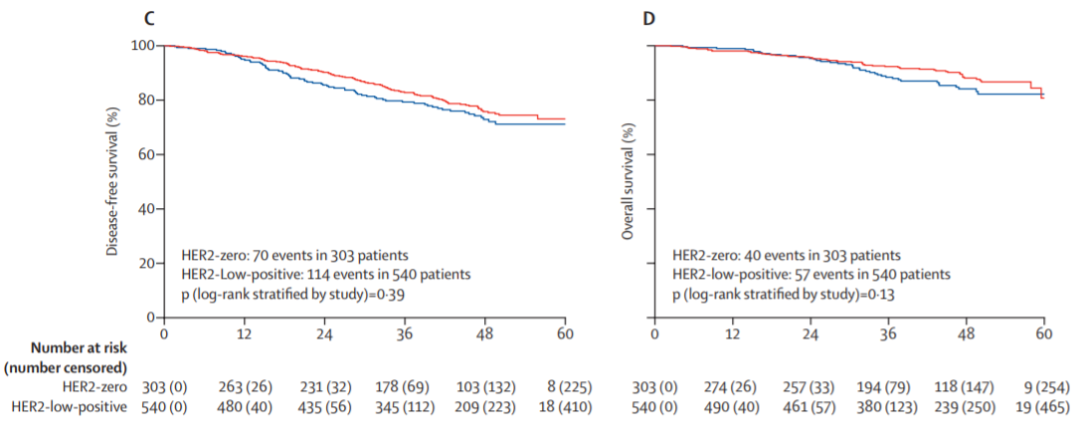 ΔHER2低表达和零表达患者的DFS和OS[3]