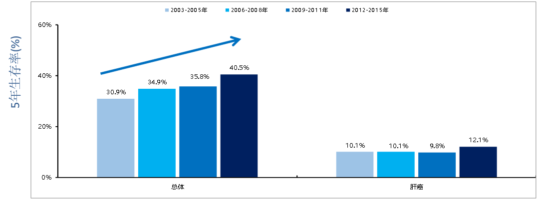 肝癌作为我国第四位常见恶性肿瘤及第二位致死恶性肿瘤病因,其防控形势严峻。2022年,我国新发肝癌病例达36.8万,占全球新发病例的42.4%,死亡病例为31.7万,占全球肝癌死亡的41.7%。尽管我国癌症患者的五年相对生存率从2003~2005年的30.9%提升至2012~2015年的40.5%,但肝癌的生存率提升相对缓慢,仅从10.1%小幅增至12.1%。为实现《“健康中国2030”规划纲要》提出的将恶性肿瘤五年生存率提高15%的目标,需要采取多方面的措施来提升肝癌治疗的效果,包括加强肝癌的早期诊断、优化治疗方案、促进创新药物研发、强化多学科团队合作,以及提升公众对肝癌预防和早筛的意识等。